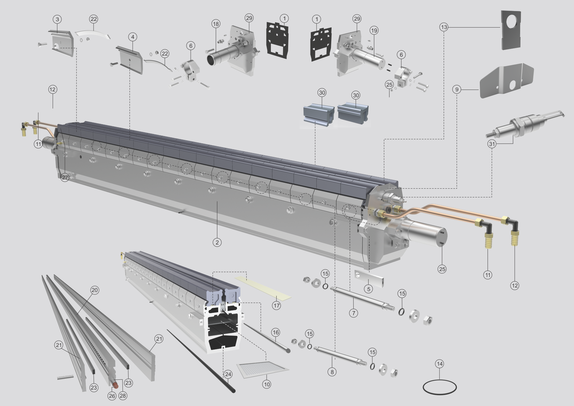 20 | BURNER MIDDLE RAIL (33.5x10x1796) | 1 | 1 | 1 | 1 | 1 | 1 | 1 |