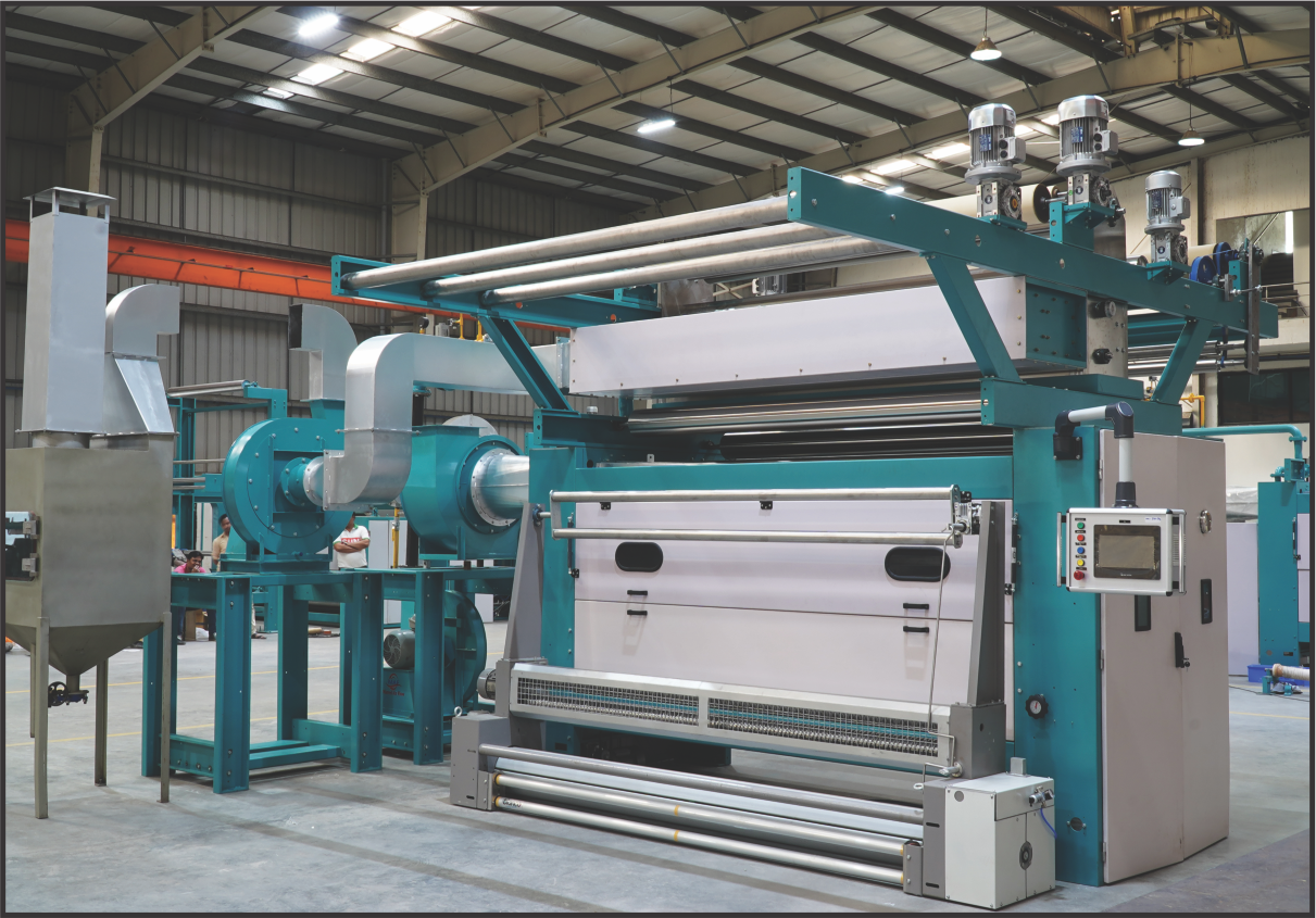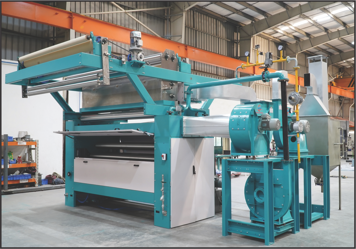 HE PRIMARY DISTINCTION BETWEEN SINGEING MACHINES FOR WOVEN FABRICS IS FABRIC GUIDANCE AND CONVEYANCE. THE VOCALIST HAS SELVEDGE UNCURLING AS WELL AS A MOTORISED SPREADING AND CENTERING DEVICE. A COMBINATION OF MOTORISED SCROLL ROLLERS WILL GUIDE THE OPEN STRETCHED MATERIAL, ENSURING THE BEST POSSIBLE OPENING BEFORE THE FABRIC IS SINGED. WHEN THE FLAME IS ACTIVATED, THE CLOTH IS PROTECTED BY A WATER-COOLED ROLLER. AGAIN, THE SINGEING ROLLER IS PUSHED TO PRESERVE CLOTH TENSION AS LOW AS POSSIBLE. THE SPACING BETWEEN THE VARIOUS GUIDING ROLLERS IS KEPT AS NARROW AS POSSIBLE TO PREVENT THE SELVEDGES FROM CURLING UP AGAIN. THE PERFORMER IS PERMITTED TO SINGE BOTH SIDES OF THE MATERIAL IN ONE SECTION OR, IF NOT REQUIRED, MERELY THE FACE SIDE.