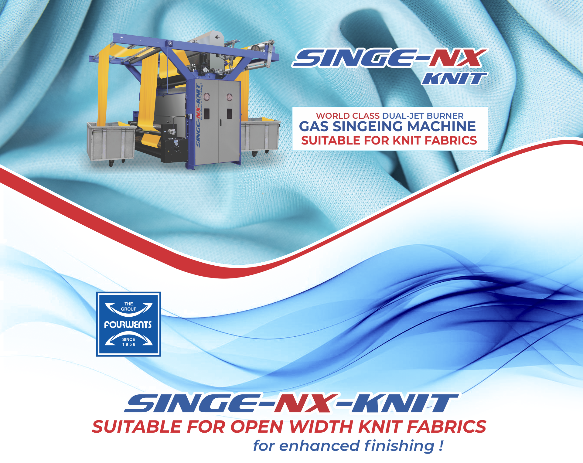 WHEN DISCUSSING QUALITY IMPROVEMENT, ALMOST QUICKLY SINGEING COMES TO THE ATTENTION OF THE SPECIALISTS ENGAGED. SINGE-NX, THE WORLD CLASS SINGEING MACHINES, HAS CREATED A NEW SINGEING MACHINE DESIGNED SPECIFICALLY FOR KNIT MATERIALS IN OPEN WIDTH FORM.
