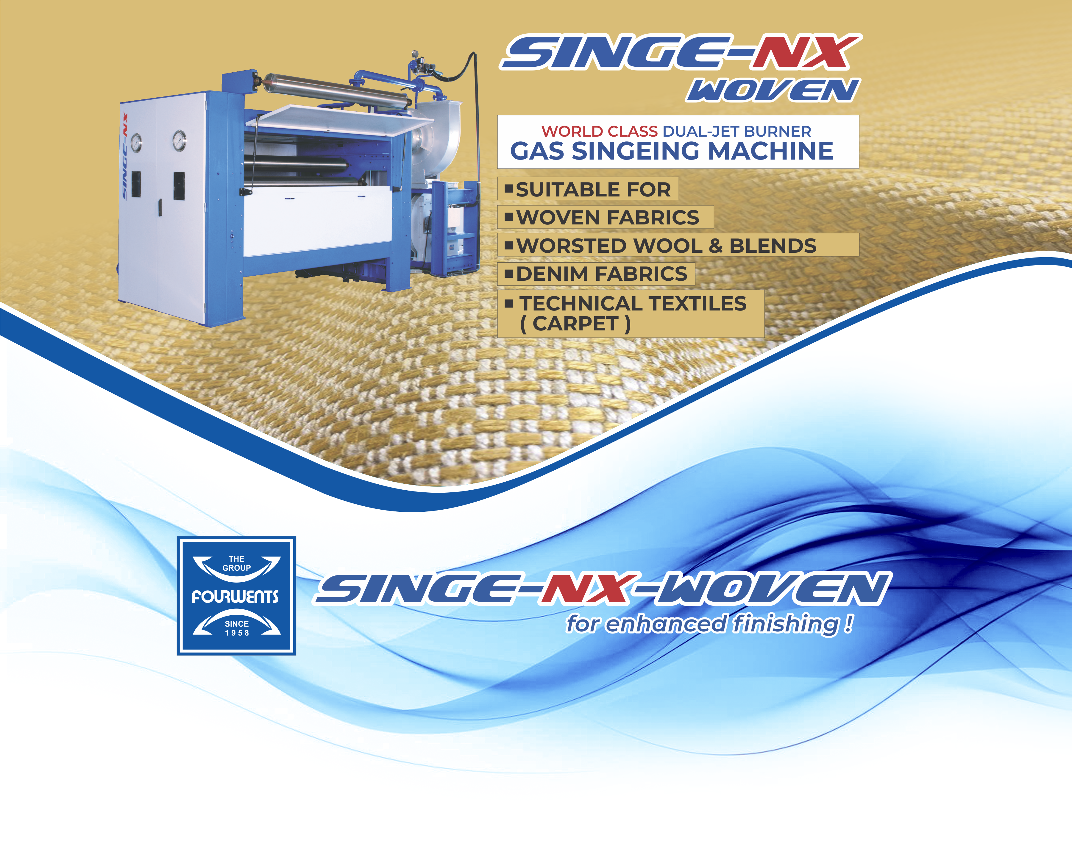 WITH 2 (DUAL-JET) SINGEING BURNERS AND 4 SINGEING POSITIONS...