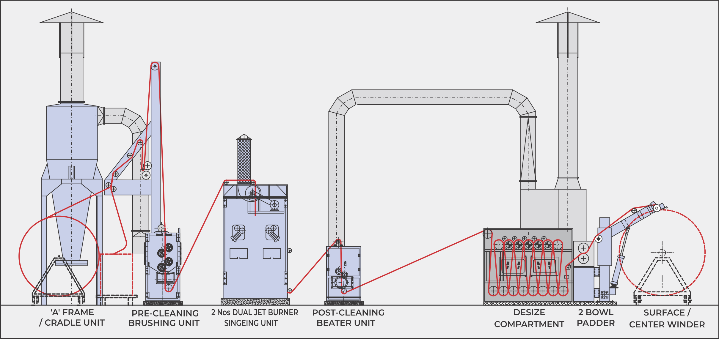 MIN. SINGEING SPEED | : 40m/min |